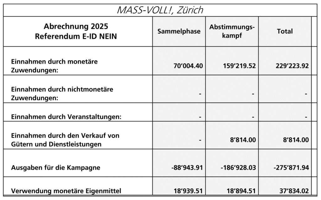Abrechnung Referendum «Massnahmen Nein»